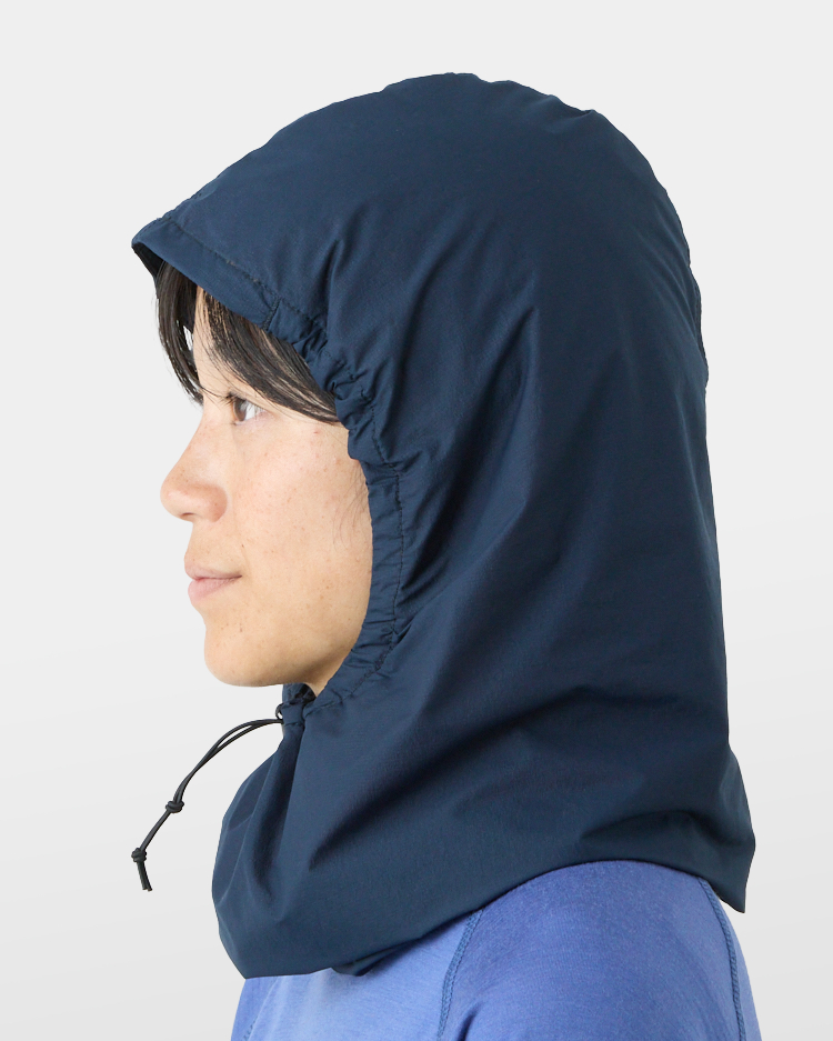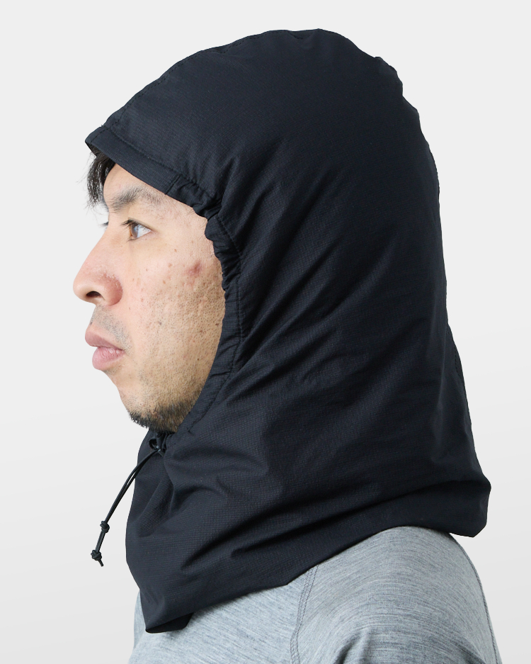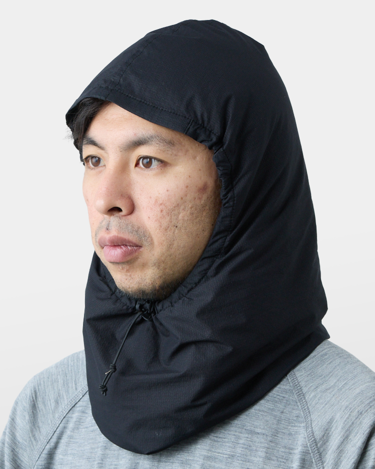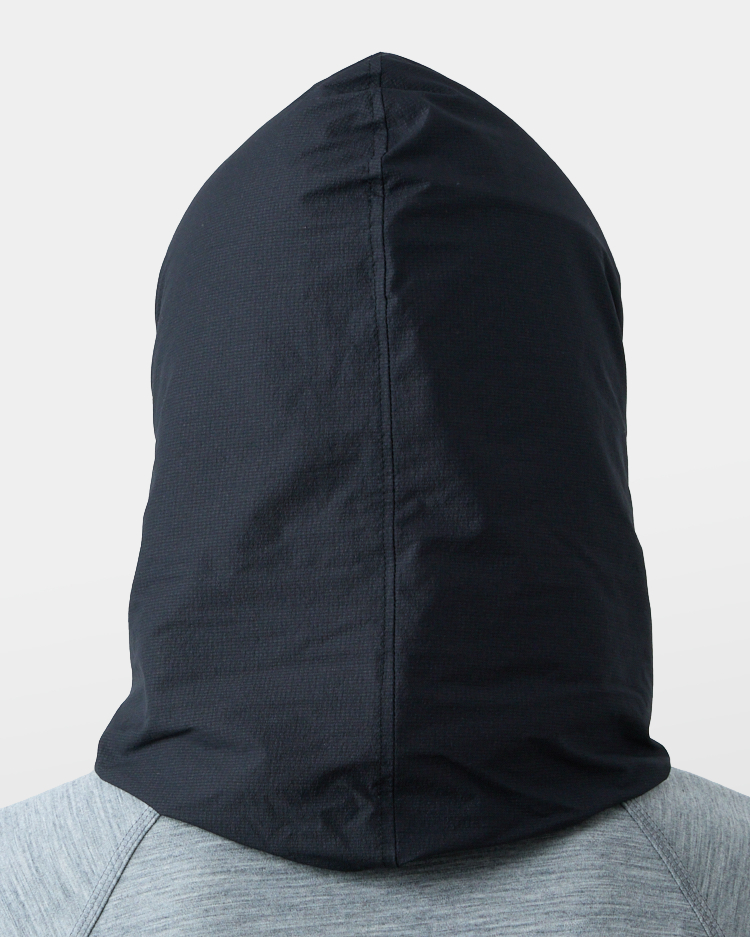 バラクラバとして着用した際も首元まで覆えるよう、フードの前丈をOnly Hoodより長めに設計している。