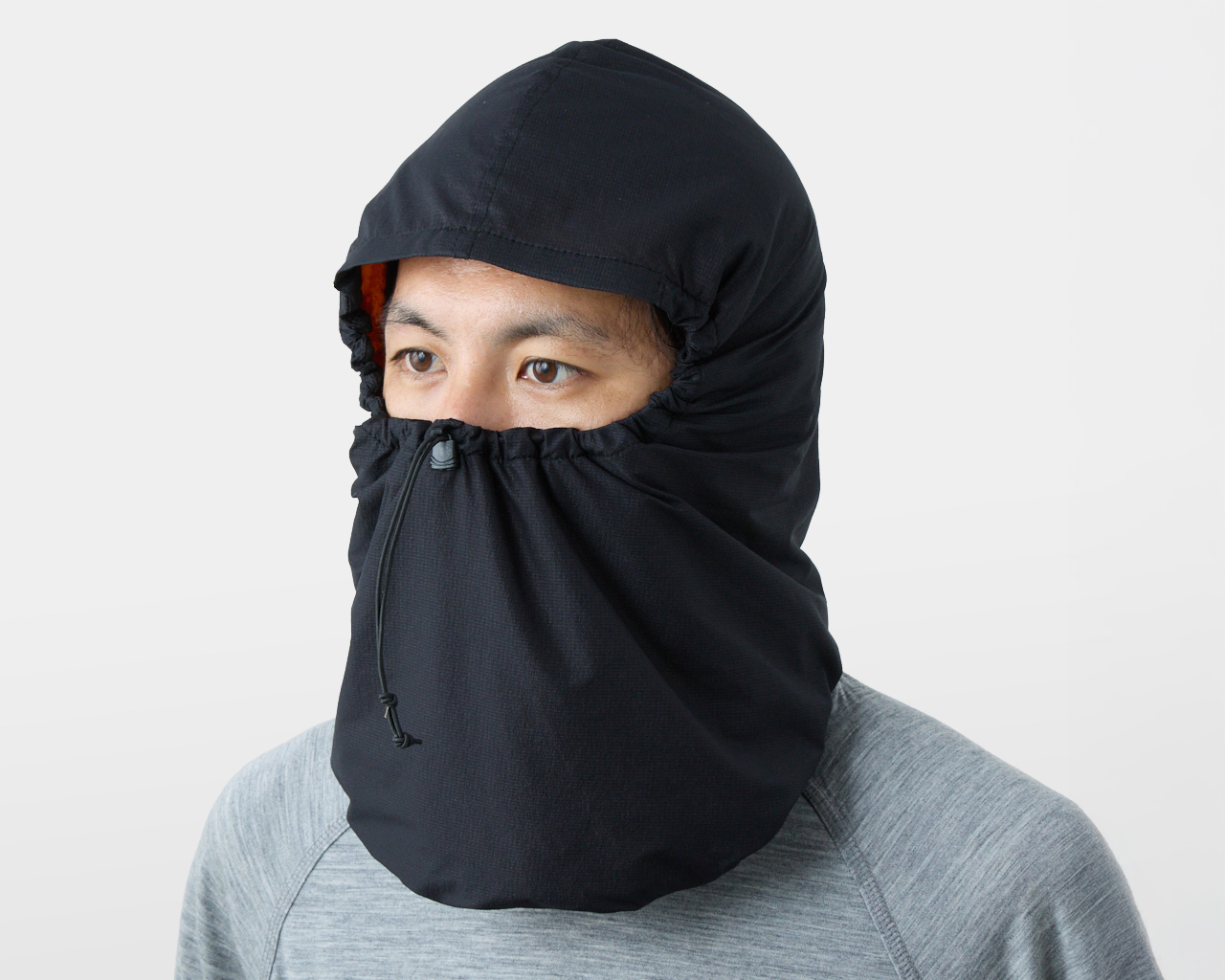 わずか51gと一般的なニットキャップよりも軽量で、首元まで覆われるので暖かく、フードをかぶらなければネックウォーマーにもなり、さらに目元まで覆えば簡易的なバラクラバとしても活用できる。