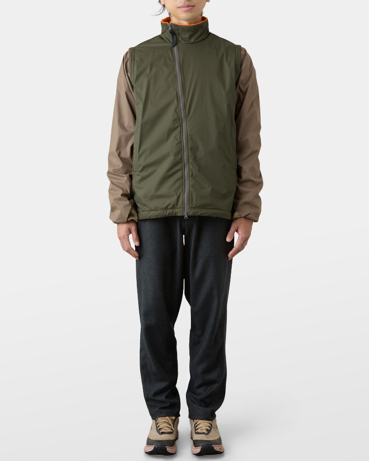 厳冬期の雪山の行動着として作った山と道Alpha Anorakを、僕は最高だと思っている。けれど、 普段使いには少し着づらいところもあるし、残雪期には少し暑い。そこで、もう少し薄手で取り扱いやすい行動着を作りたいと考えた。それがこのLight Alpha Vest/Jacketになった。