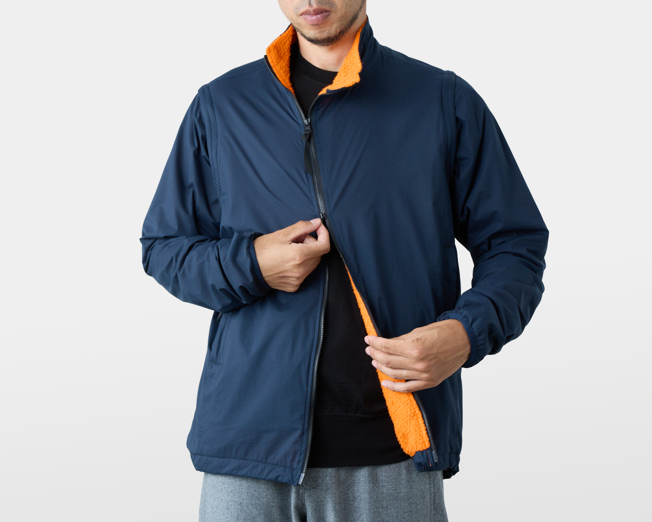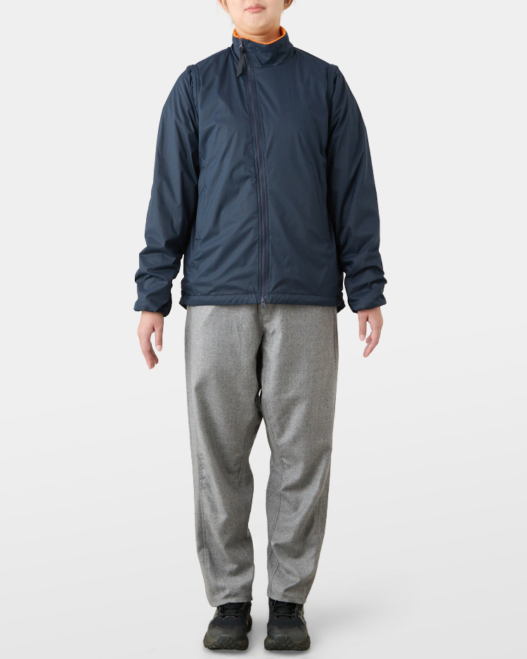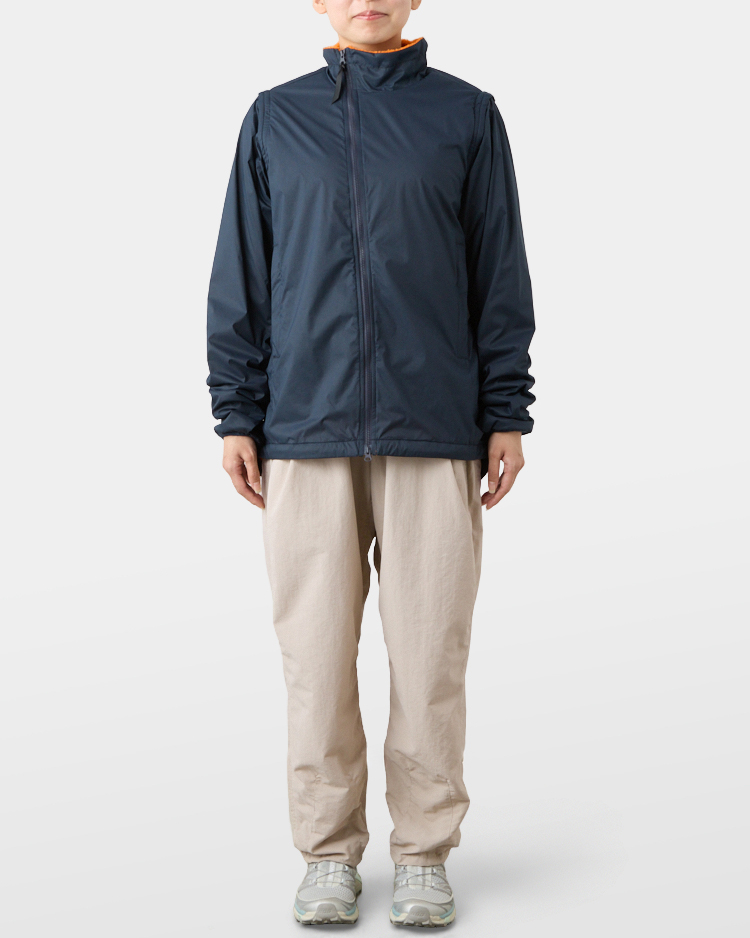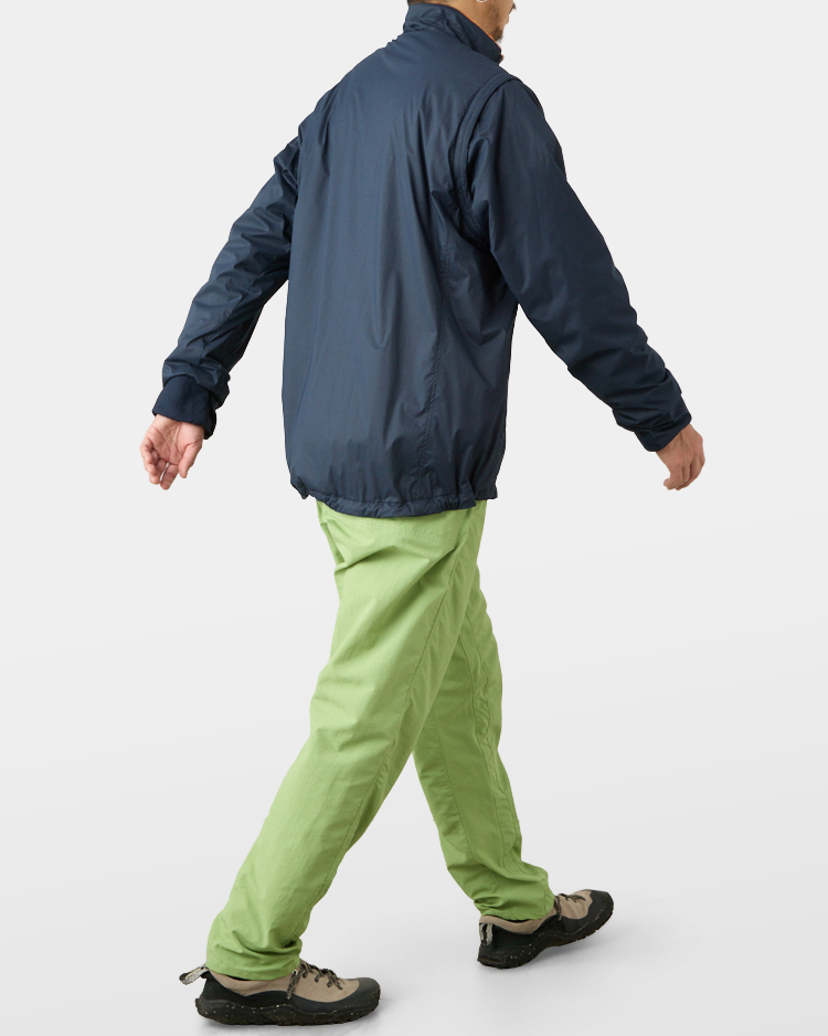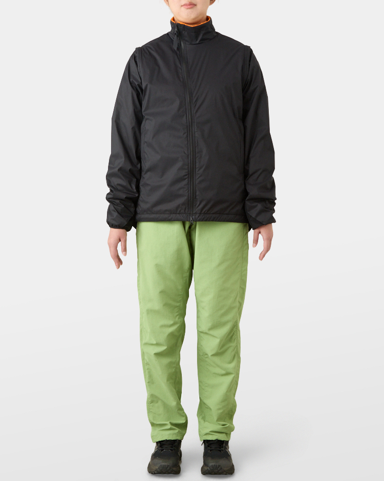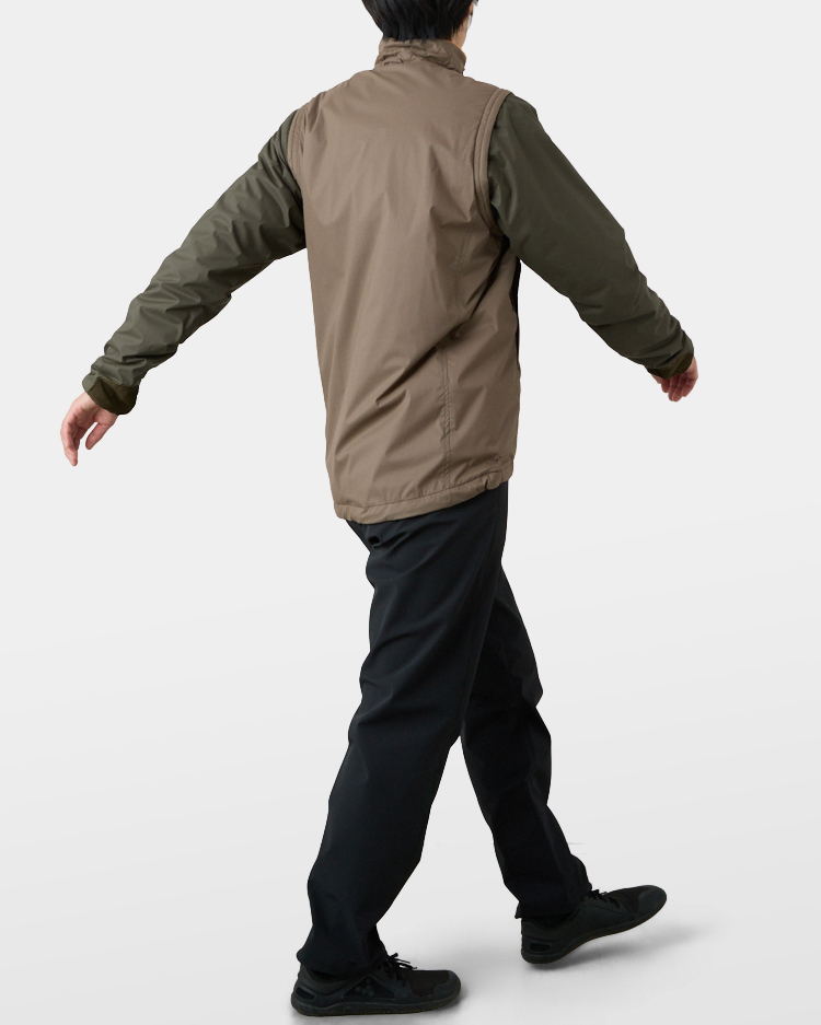 さらに、袖を取り外せばベストになり、腹部など体幹は冷やさずに、より高負荷の行動にも対応。冬のハイカーに。