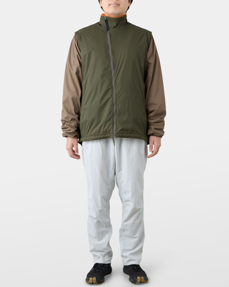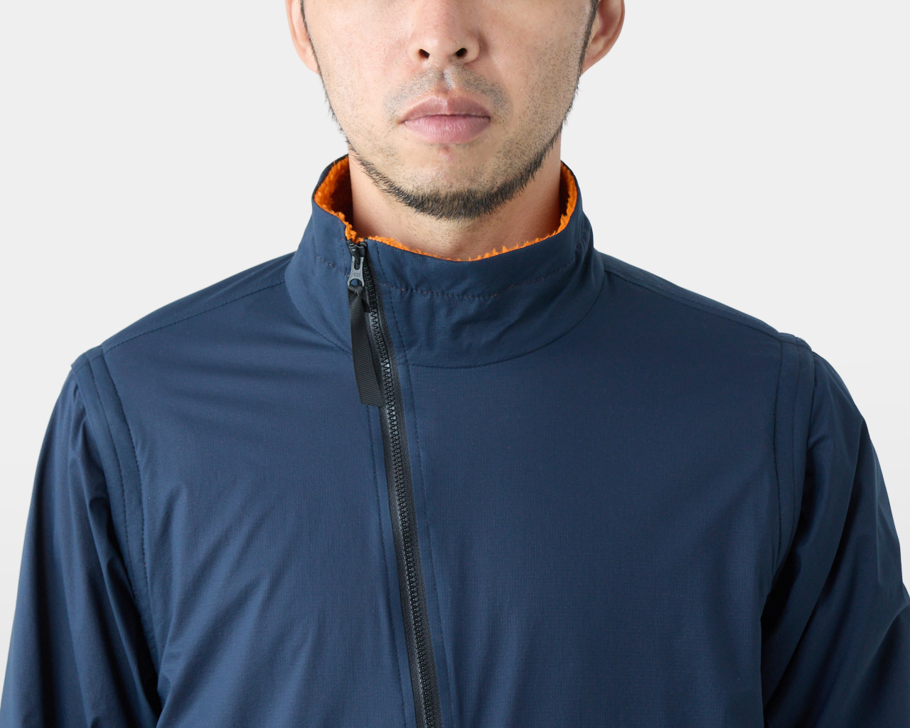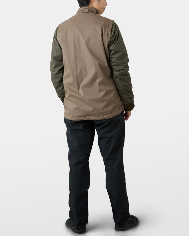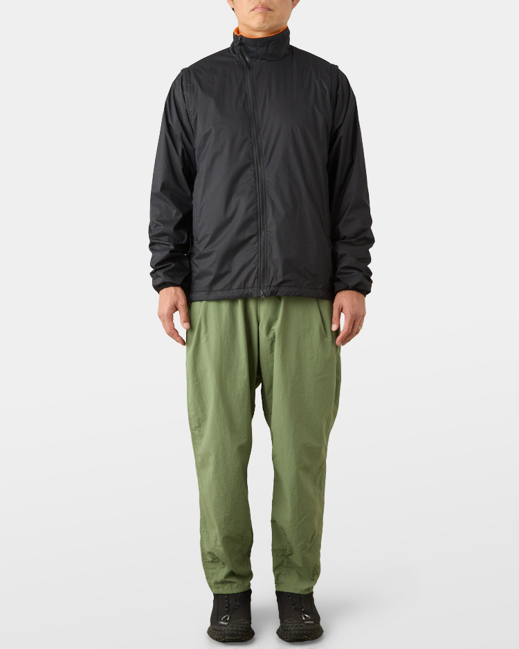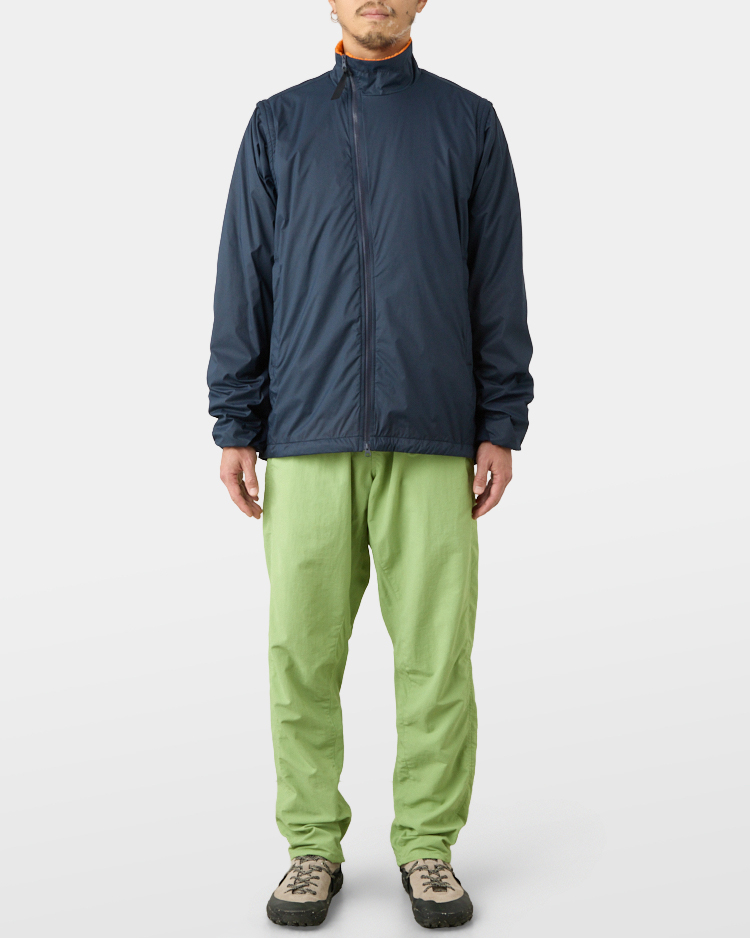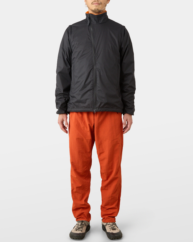 一着で非常に幅広いシチュエーションに対応するLight Alpha Vest/Jacketは、たとえ暑くて脱いでしまいたい状況でも、袖を外してベストにすることで、体温維持に重要な体幹部を冷えから守りながら行動を続けられる。