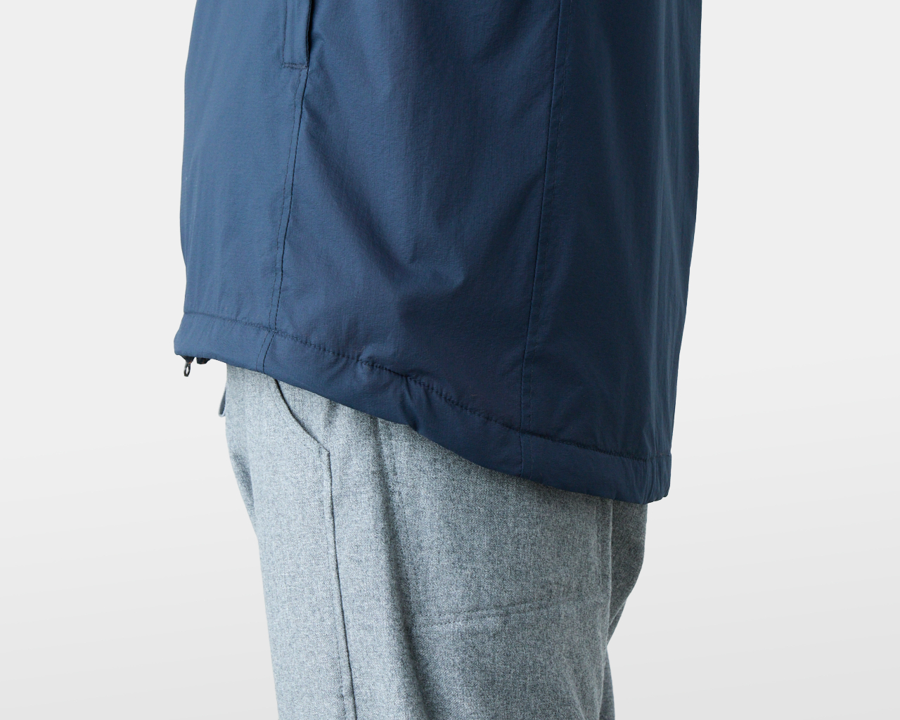 両サイドには裾を絞れるコードとアジャスターを備えている。