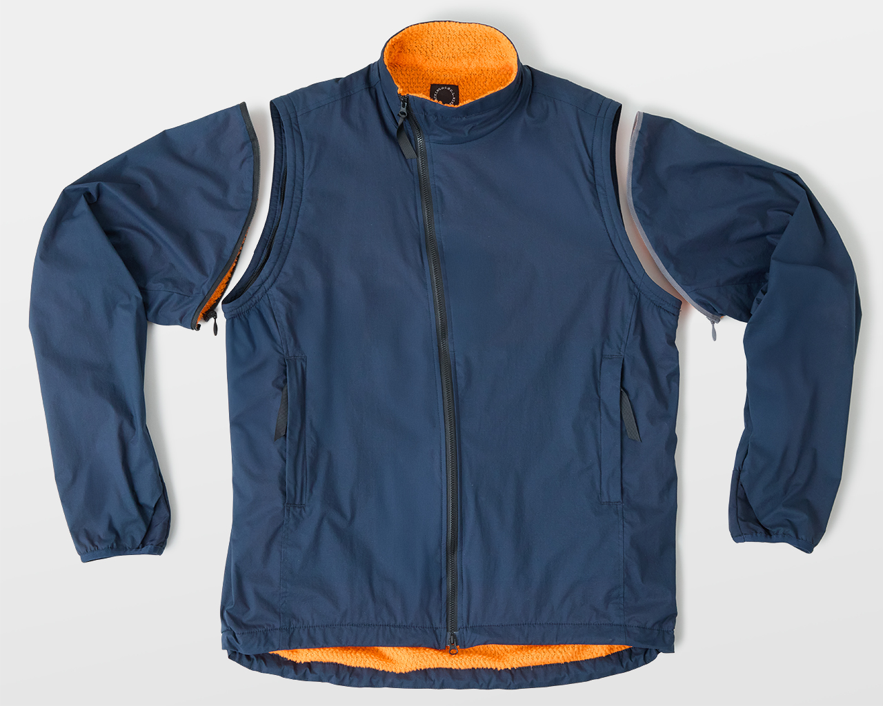けれど出来上がった試作品を見て、いっそのこと長袖を付け、ジャケットにもベストにもなる行動着を作ってみたらどうだろうと思った。季節は既に肌寒く、ベストよりもジャケットを着たくなっていたからだ。
