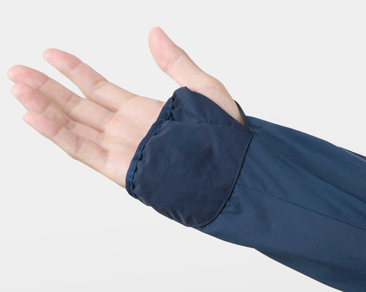 アイスアックスを使用したり岩場で手をついたりしても破れにくいよう、サムホール部には丈夫なタスランナイロンを採用。