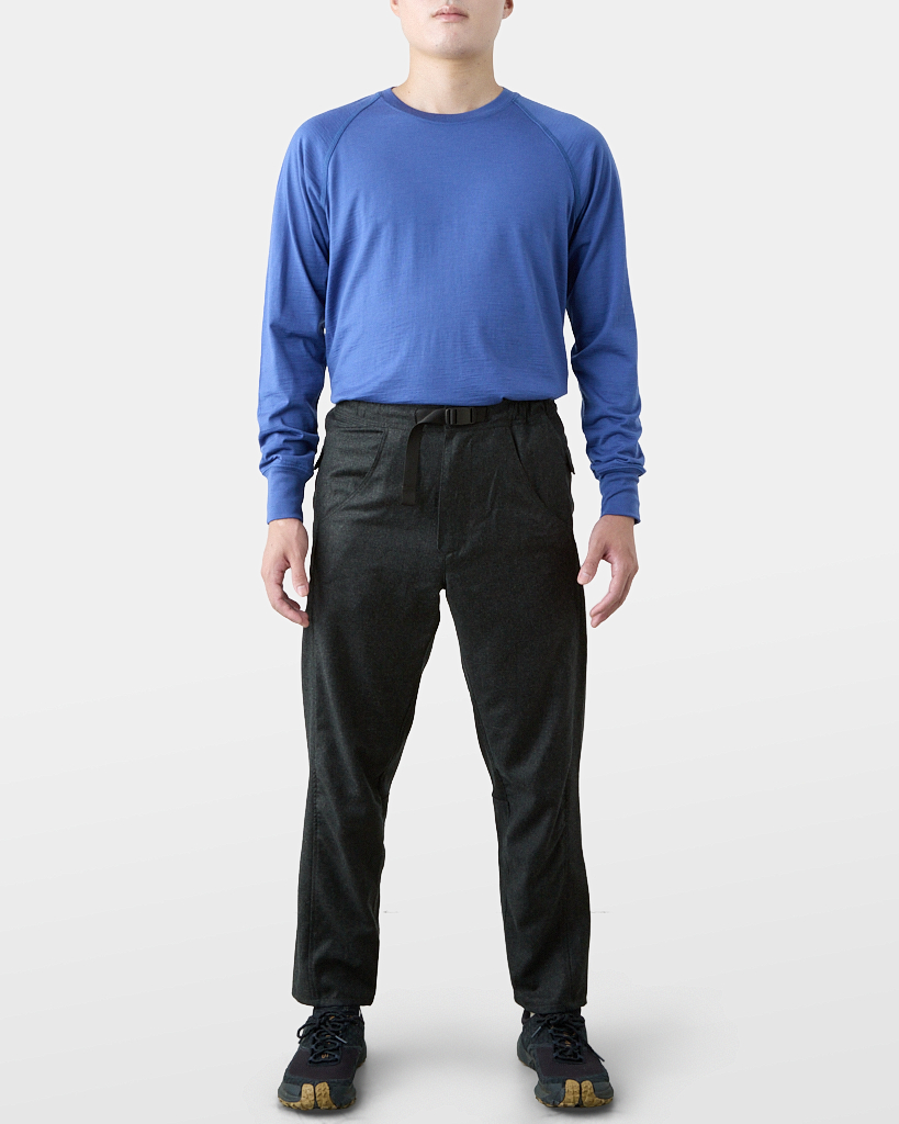 肌触り良く柔らかなイタリア生産のメリノウール生地は、ずっと履いていたくなるような履き心地と暖かさ。一方、裏面にはナイロン・リップストップを織り込み強度を高めてあるから、山でもトレイルでもどこでも使えるタフさも併せ持つ。そしてもちろん、ポケットは使いやすさに定評ある山と道の5-Pocketだ。