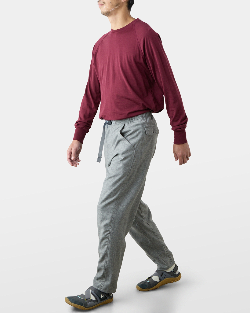 普段の生活から山まで、冬を気持ちよく過ごせるウールのパンツ。