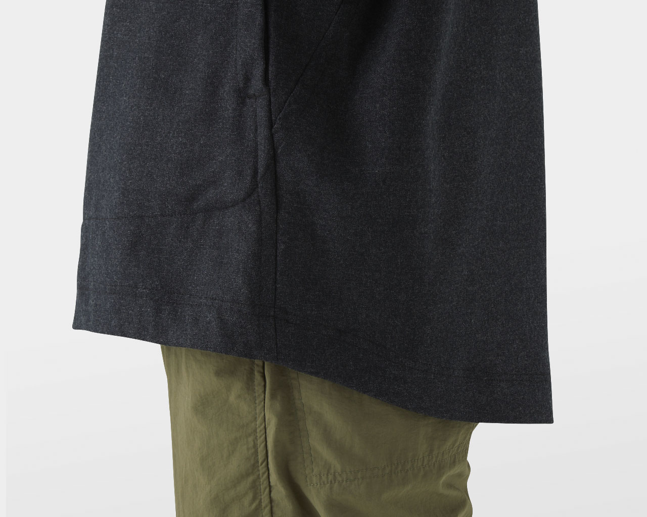 そこで、Merino 5-Pocket Pantsより少し薄手のメリノウール生地で作ってみたところ、やはり調子が良い。アウターとしても使えるし、着ていて気持ちいいから、ずっと着ていられる。使い勝手としては耐風性能が少し高いフリースのような感覚だろうか。
