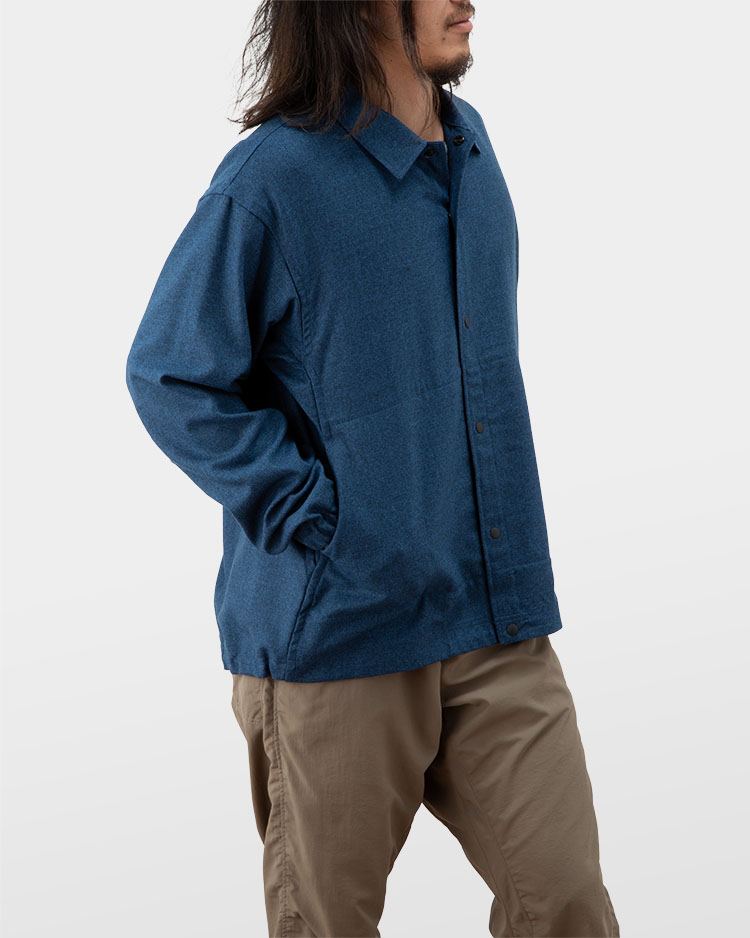 2019年にベータ版として出したβ Merino Coach Shirt Jacketは、袖を捲まくれたり、大きなポケットが便利ということで、使ってもらった方々からは好意的な反応をいただいた。そのまま、正規の製品としてリリースすることも検討してみたが、Merino Shirtとの差が少ないため、いっそのこともう少し厚手のコーチジャケットとして作ってみるのはどうかと考えた。