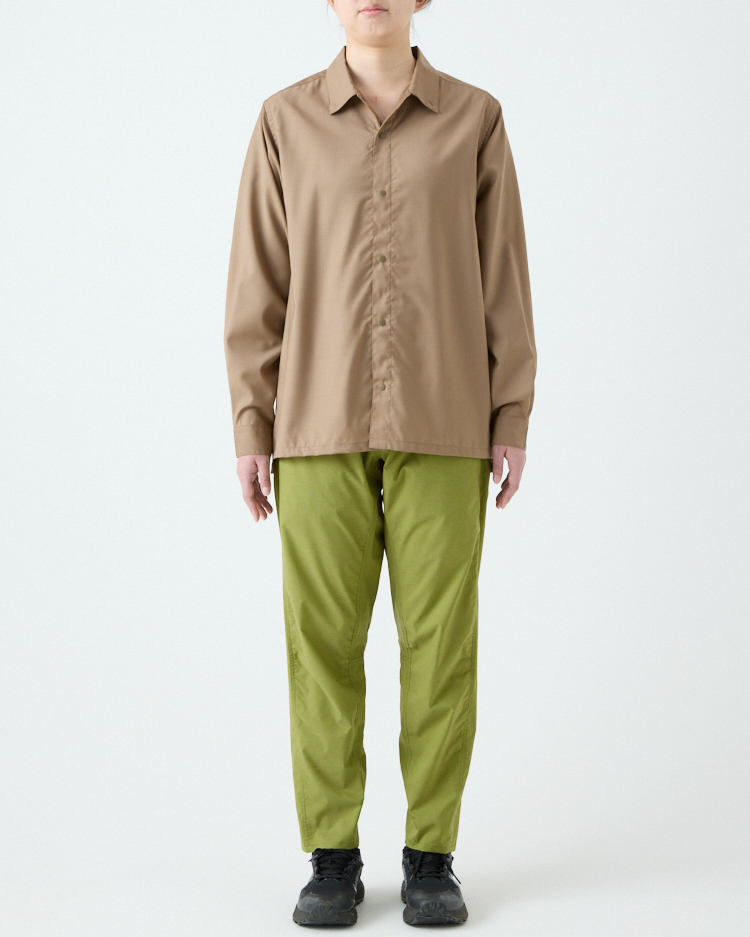 ただ、従来の「ウールのシャツ」といえばネルシャツのように生地が起毛した、焚き火が似合う暖かな服のイメージだ。僕が山で着たいウールのシャツはそれとは違った。