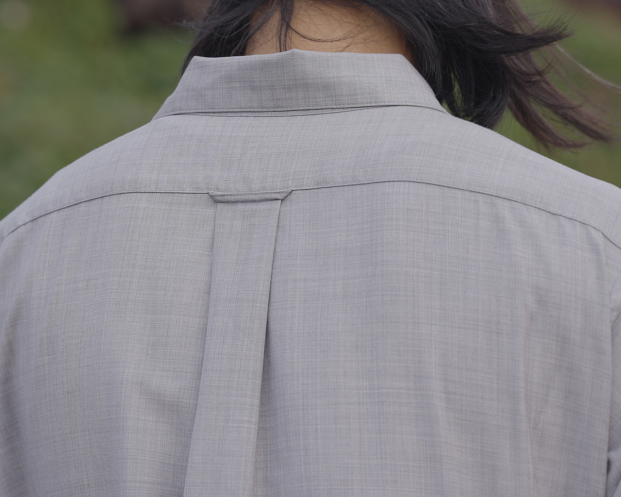 最初はそもそも生地として良くないのではないかとも考えた。だが、僕が当初求めた「暑くないウールのシャツ」というコンセプトから考えると、保温力は低いもののウールならではの消臭機能と調湿機能を備えたこの生地は、行動着には最適なのではないかと考えることができた。