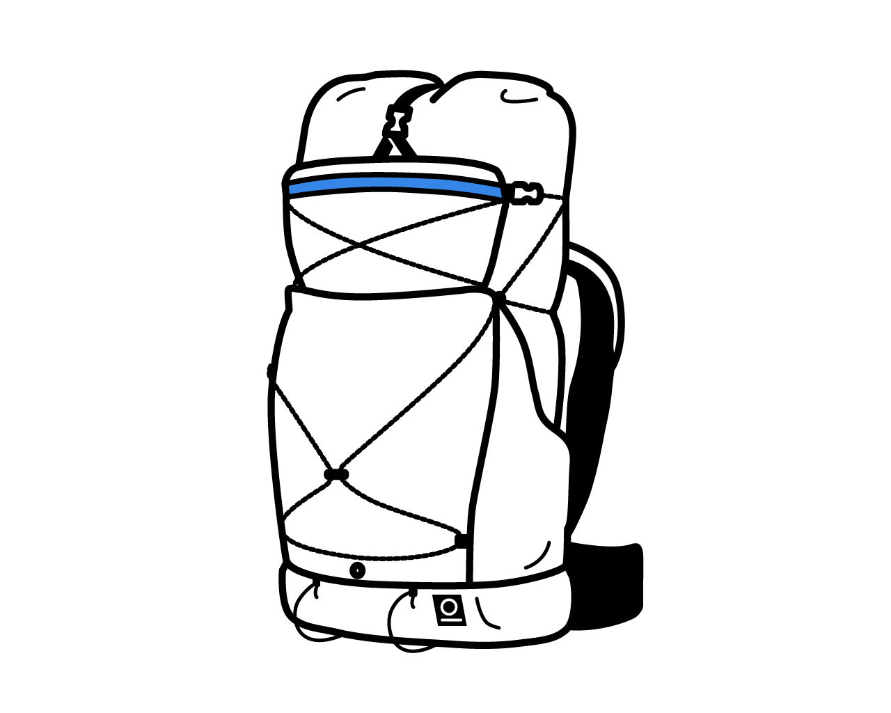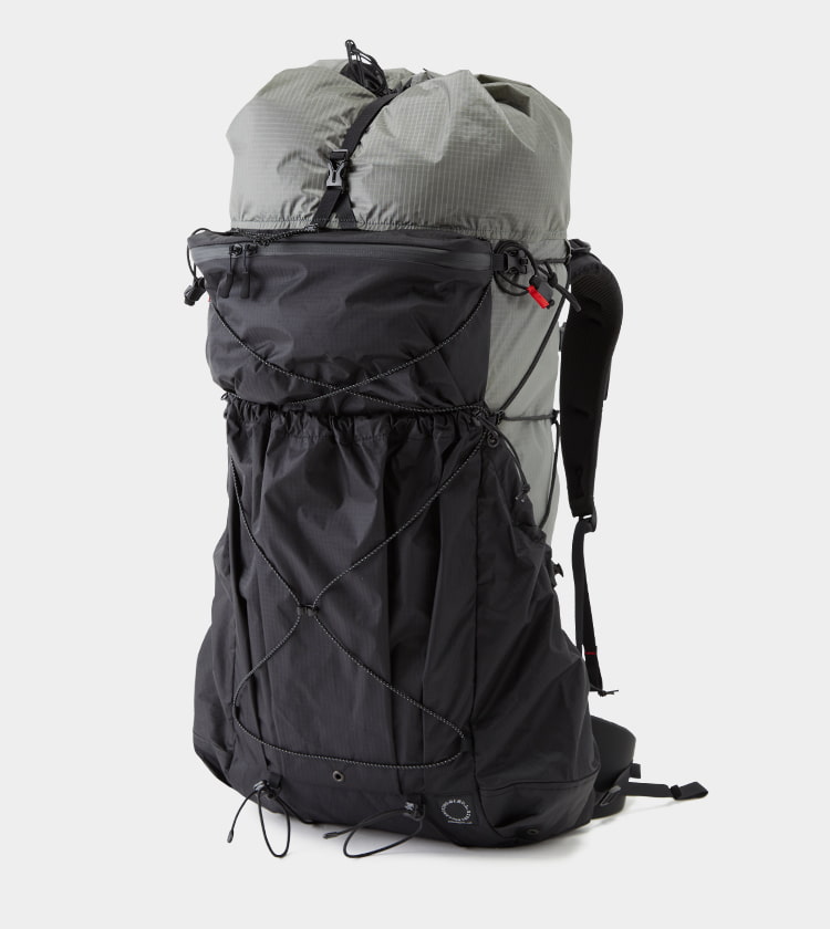 「山と道」と英国のファブリックブランド「パーテックス」が共同開発した70デニールのオリジナル生地を採用。適切な織り構造としなやかで衝撃を逃がしやすい設計により、バックパックに求められる軽量性と通常のナイロン生地をしのぐ高い強度を両立。加水分解に強いポリカーボネートコーティングとの組み合わせにより、耐久性を向上させています。