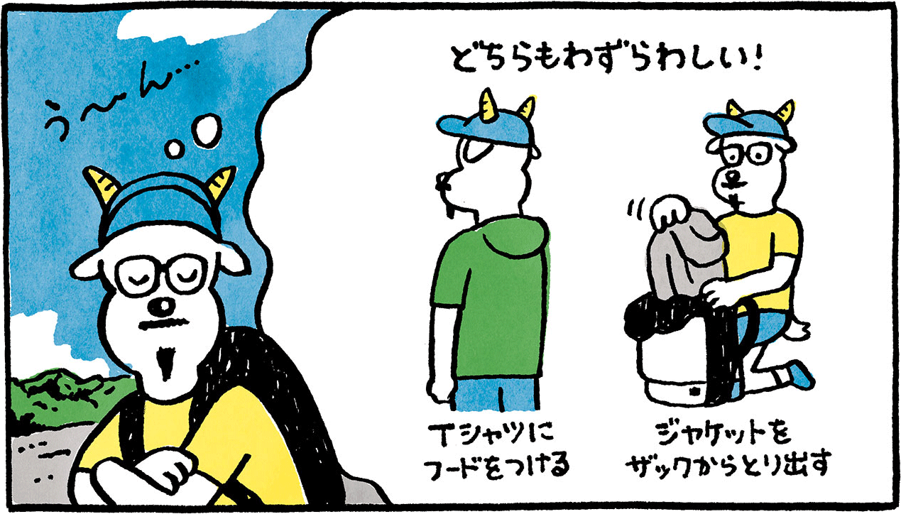 - フードつきの服を持っていくか、フードなしの服を持っていくか悩まなくてすむ。