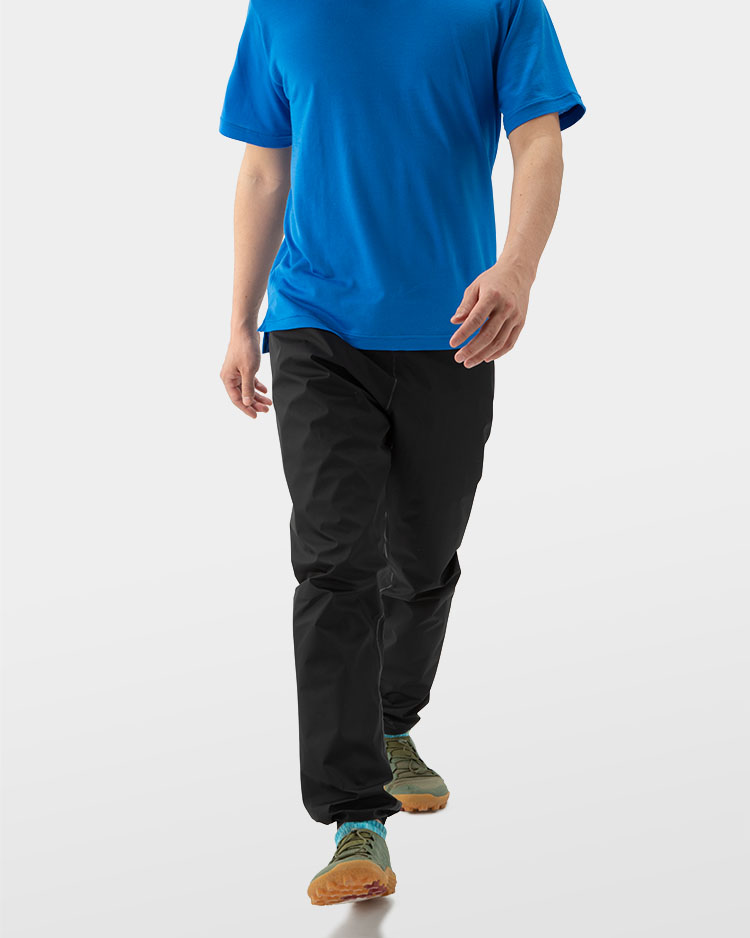 重量わずか85g(Size S)は3レイヤーのナノファイバーメンブレンを使用したレインパンツとして世界最軽量クラスで、若干細身の動きやすくシンプルなデザインと軽く蒸れない履き心地、さらに山と道ならではのスマートフォンポケットも付いている。ぜひ、晴れた日も積極的に使ってほしい。