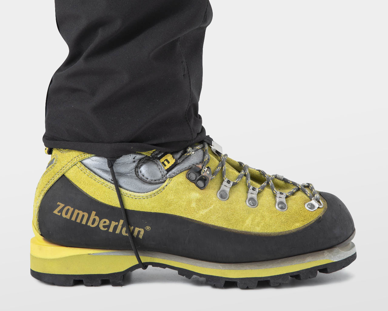 着脱の面倒なゲイターをしなくとも、裾のフックとブーツを連結することで雪の侵入を防ぐことができ、裾内側の頑丈な500Dコーデュラナイロン生地は、パンツをクランポンの爪から守ってくれる。