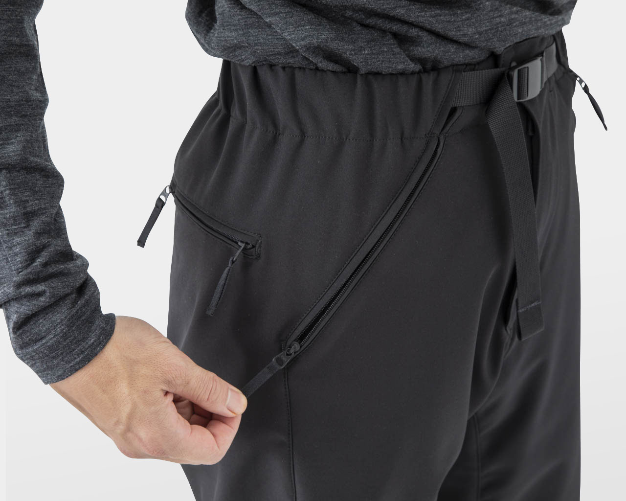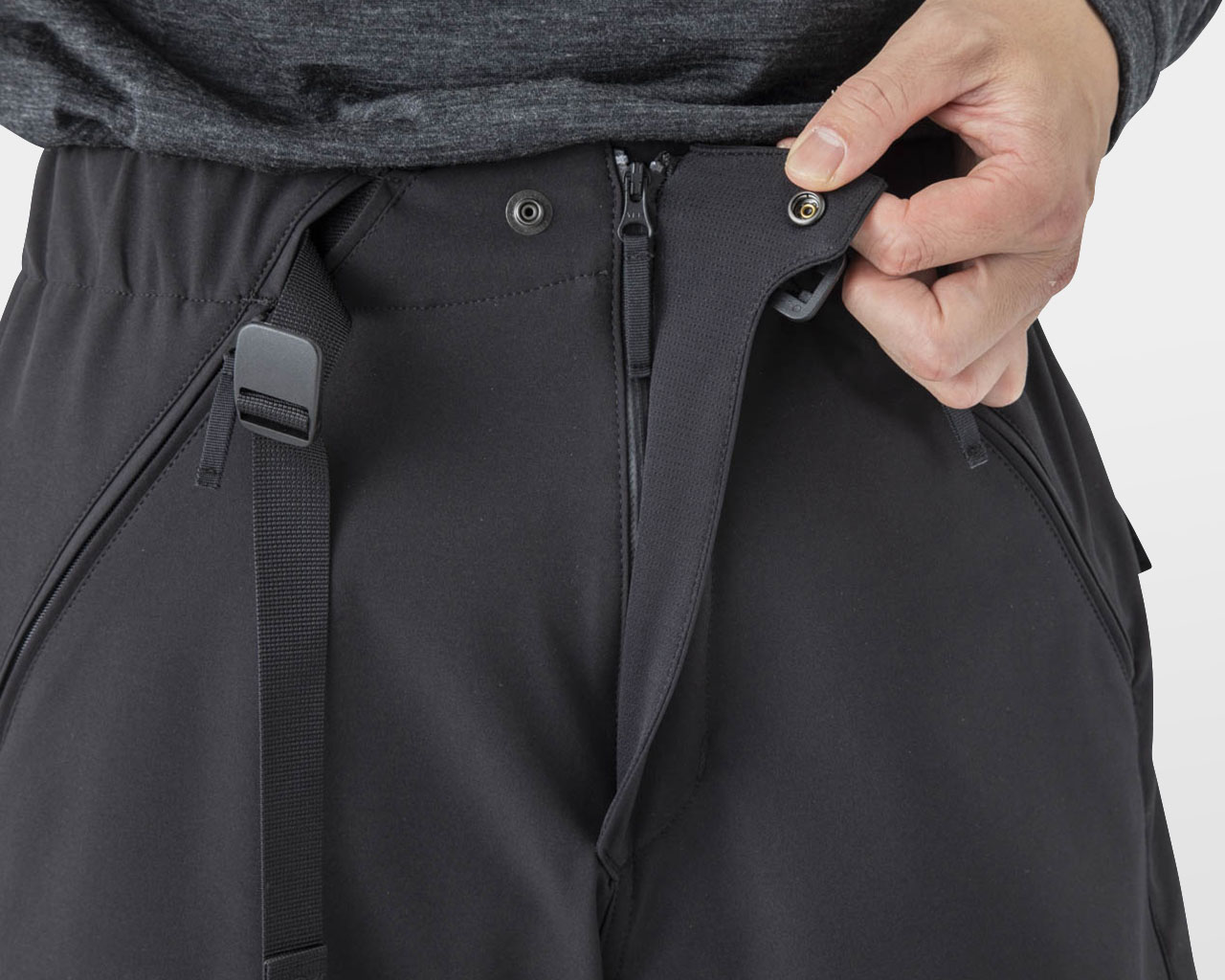 雪が侵入しないよう各ポケットにはジッパーを設け、スマートフォンポケットはカバーを取り付けた状態でも出し入れしやすいよう、他の山と道のパンツ/ショーツよりもひと回り大きくした。