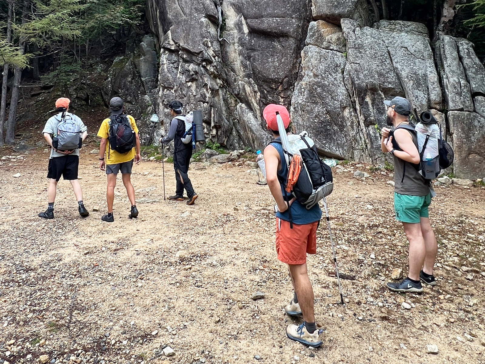 ・参加者全員で、MYOGで製作したバックパックを背負いハイキング