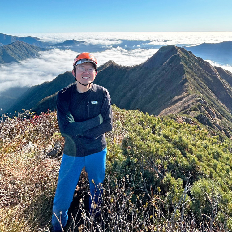 20歳の時、訪れたヨセミテの絶景に心を打たれる。機械工学の知識とアウトドアへの情熱を活かし、大学卒業後自転車部品メーカーに就職。コーヒー好きが高じ、山でも美味しいコーヒーを楽しむための道具をデザインし、2016年にアウトドアギアメーカー『MUNIEQ』を設立。同時期に始めたランニングが次第にトレイルランニング中心となり、山に入る機会が増える。HLC北海道の初年度からプログラムに参加し、無雪期はトレイルランニングからハイキングまでシームレスに活動。冬はスノーボードも楽しんでいる。
