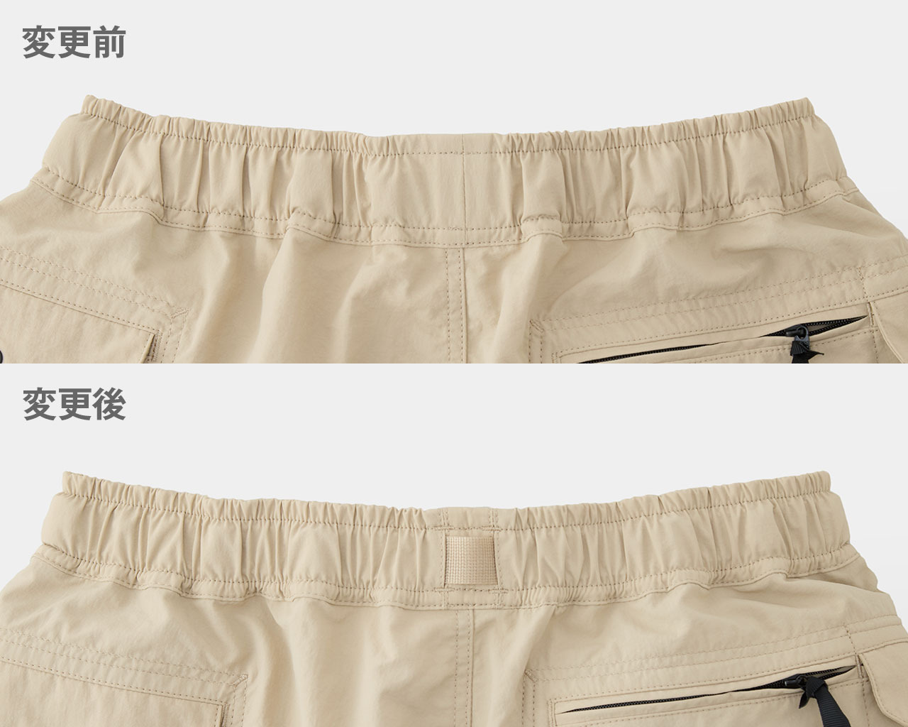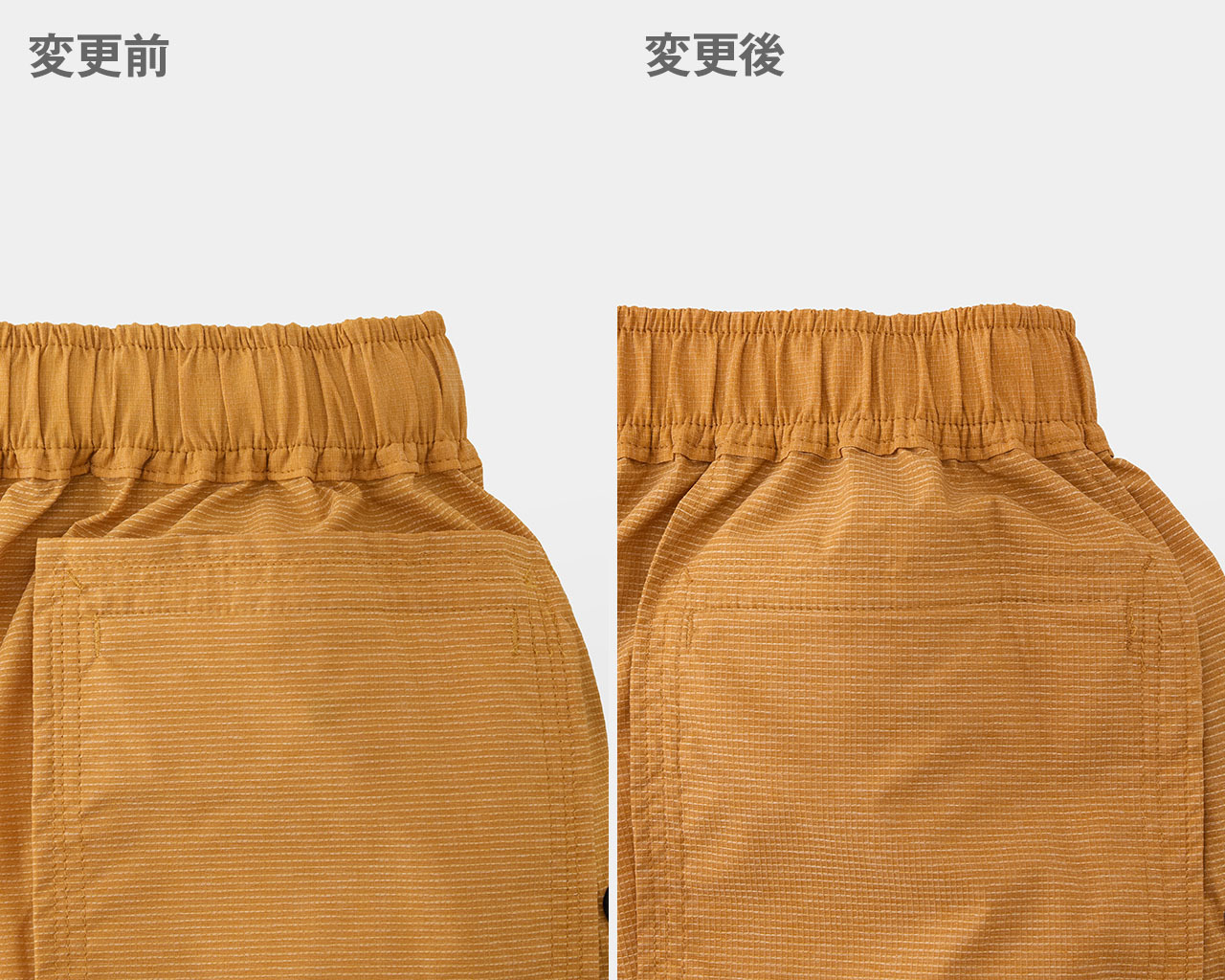 ボトムス製品のウエストベルト構造の見直し