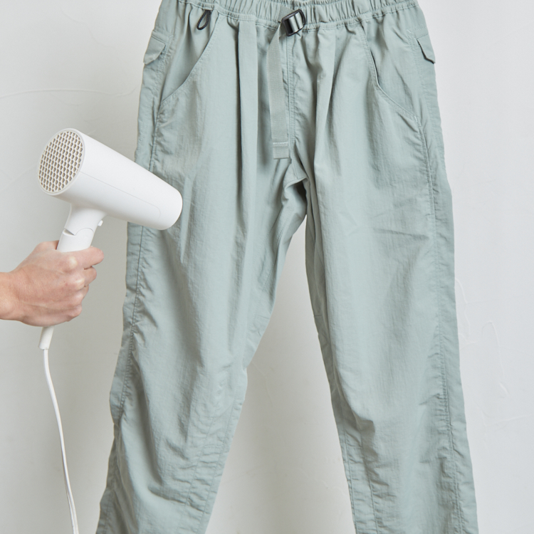 アイロン、ドライヤーや乾燥機で熱を加えることで低下した撥水性能を回復させることができます。着用時の摩擦や洗濯回数を重ねることで撥水剤は少しずつ落ちてしまうため、熱を加えても撥水性能が回復しなくなってきたと感じたら、市販のアウトドアウェア用撥水剤を使用するか、クリーニング店による撥水加工サービスを利用してください。